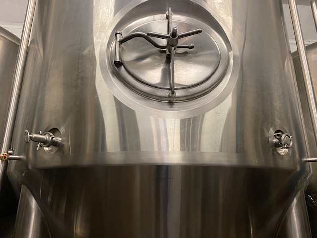 Only used 7 times, this ABE Fermenter is in almost new condition. All fittings are 1.5" and 2" try-clamp. There is an internal racking arm and PRV set to 1.5bar. Other connections are bottom outlet, thermometer, tap, sample valve and spunding outlet with pressure gauge. There is a side manway and top manway for dry-hopping. It has two cooling jackets which at the moment are connected.