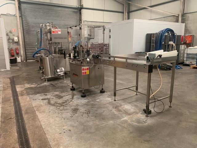 Filling and labelling atmospheric monoblock manufactured in 2014 by the Italian company Framax. The machine was last operated in July 2025 and is still installed in the brewery but not in operation. Full original instruction manuals for both the filler/capper and labeler are included.